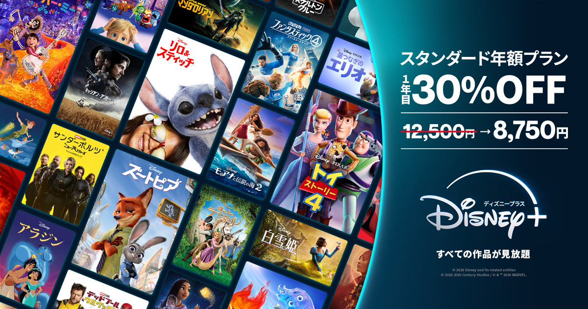 ディズニー作品はもちろん、ピクサー、スター・ウォーズ、マーベル、ナショナルジオグラフィック、スター作品(アニメ、洋画洋ドラ、韓国ドラマなど)まで何でも充実のラインナップとなっています。